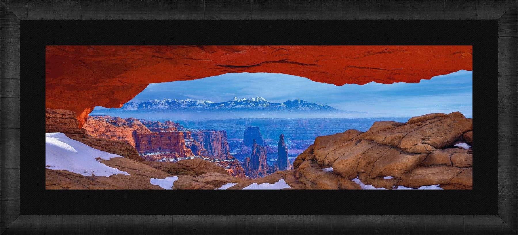 I wanted this shot to be like a scene within a scene. Instead of the arch being the star of the shot, I wanted it to be part of the perfect frame. This is one of those photographs that the longer you look at it, the more you will see. The snow-capped peaks in the distance have an almost mystical feel about them and the light of sunrise added the perfect glow to the arch and the canyon mesas. It’s almost a halo effect. This piece reminds me of how vast nature is and how small we are in it.Â